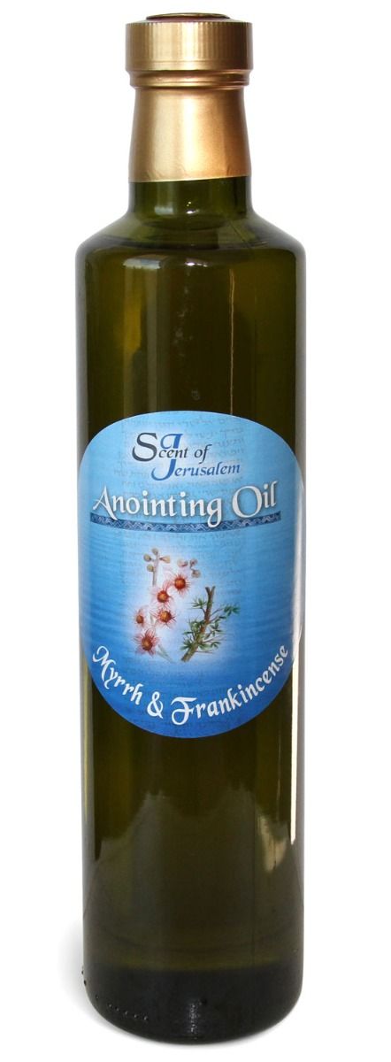 The 'Frankincense & Myrrh' oil is made from virgin Galilee olive oil infused with Frankincense, Myrrh.