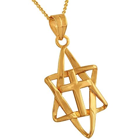 Interlaced Gold fill Star of David Pendant with a Cross mounted in the center created by Israeli jewelry designer 'Marina'