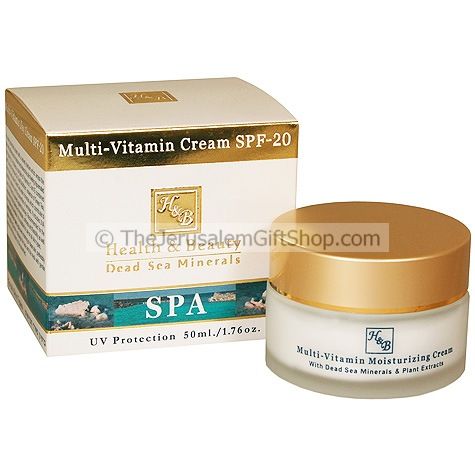 H & B Multi-Vitamin Cream SPF-20 is an easily absorbed cream with a velvety texture which wraps the skin with softness and moisture and leaves the skin feeling rejuvenated and glowing. It includes a complex of Vitamins C and E combined with Evening Primrose Oil, Sea Buckthorn, essence of Green Tea, Aloe Vera and active Dead Sea water minerals which contribute to flexibility, radiance and the prevention of wrinkles.