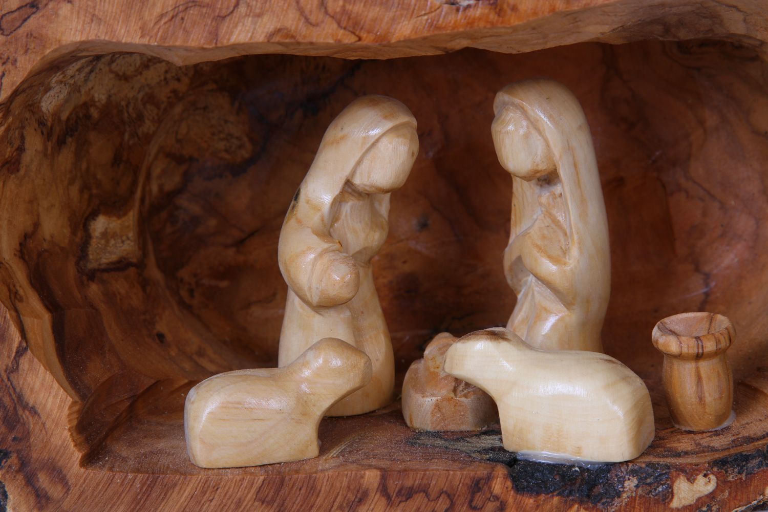 hand in Bethlehem from a solid olive wood branch this Nativity Set with hand carved figures is quite a centerpiece.
