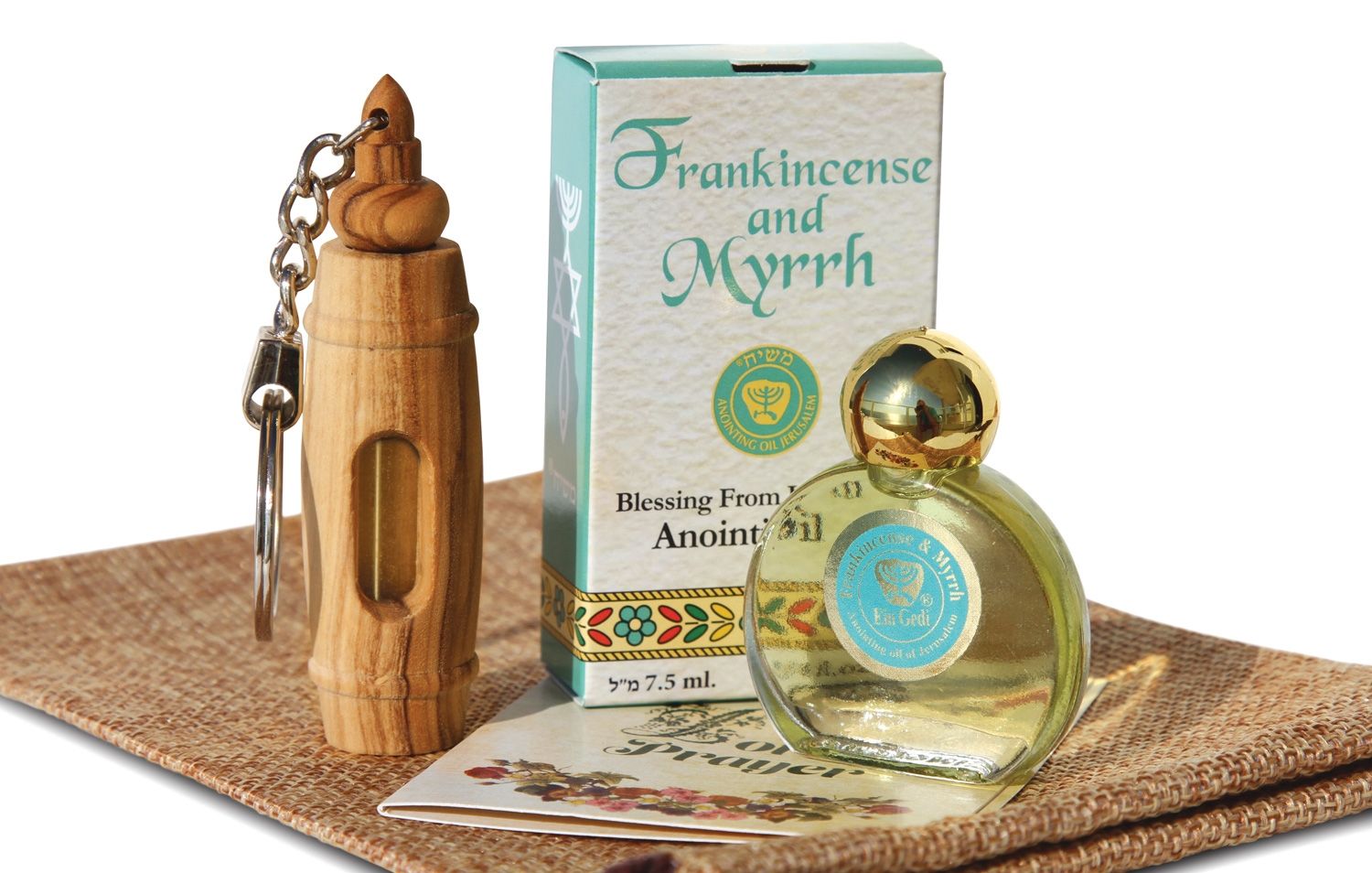 Perfumed Anointing Oil, Virgin olive oil from the hills of Jerusalem and Galilee is infused with the essence of Frankincense and Myrrh.