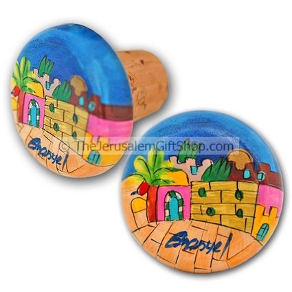 Wine Bottle Stop Jerusalem style - unique stopper for your bottles with handpainted Jerusalem motif.