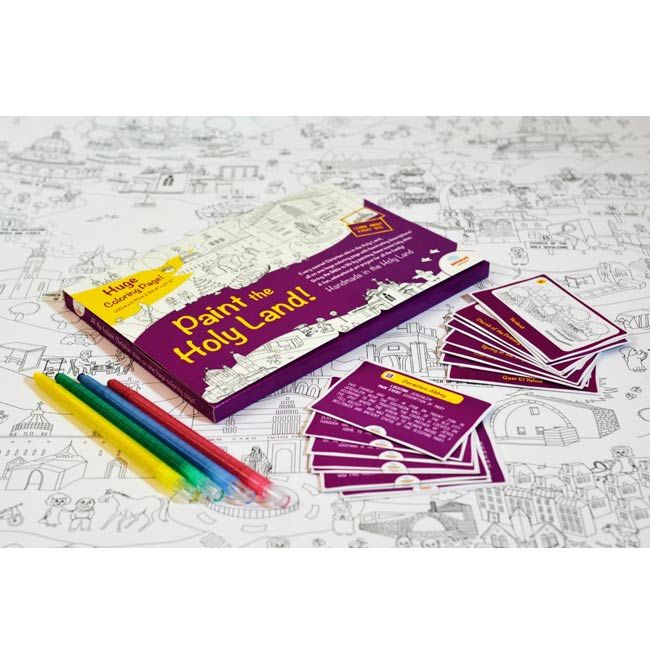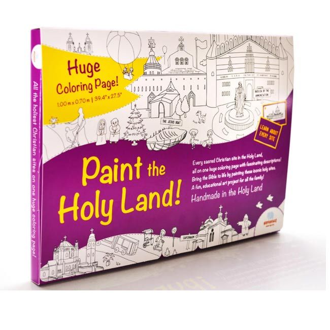 Every sacred Christian site in the Holy Land presented on one huge page ready to be colored in. Includes fascinating educational cards describing each Holy place.
