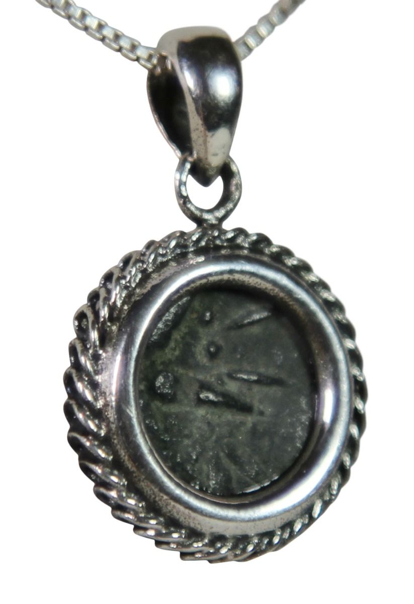 Genuine Widow's Mite Coin in Sterling Silver Frame Christian Pendant