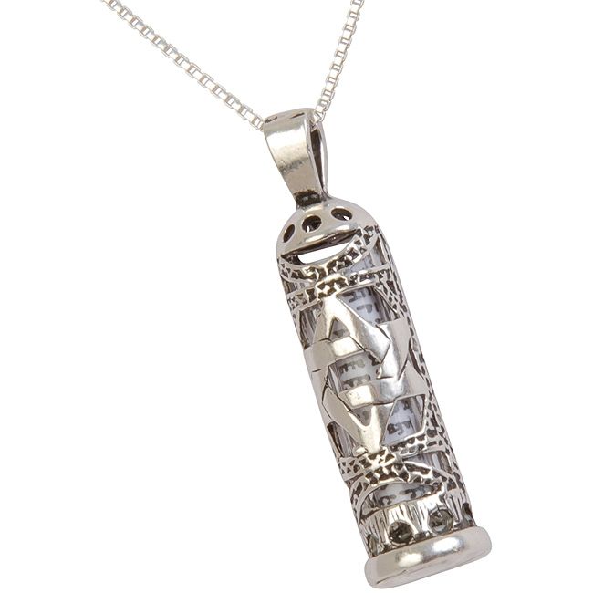 Wear this beautiful sterling silver 'Star of David' scroll Mezuzah next to the doorposts of your heart.