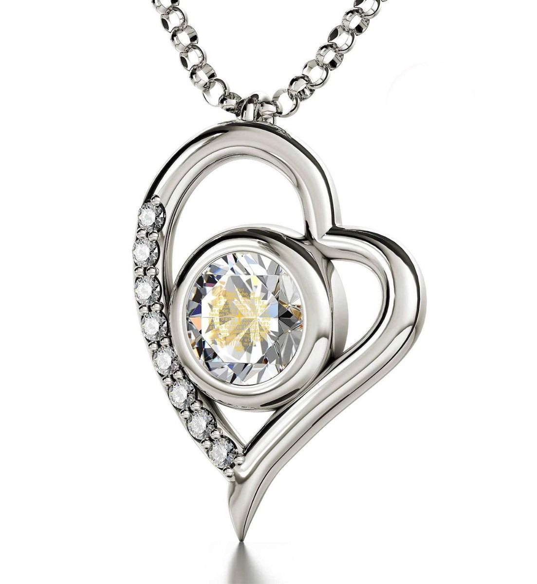 These inspiring necklaces for women featuring the Lord's Prayer - Matthew 6:9-13 inscribed exclusively in 24k pure gold on Swarovski with Cross framed by a Swarovski encrusted 3-micron gold plated 'heart' proclaim a message of love from the giver and a message of love from our Creator.
