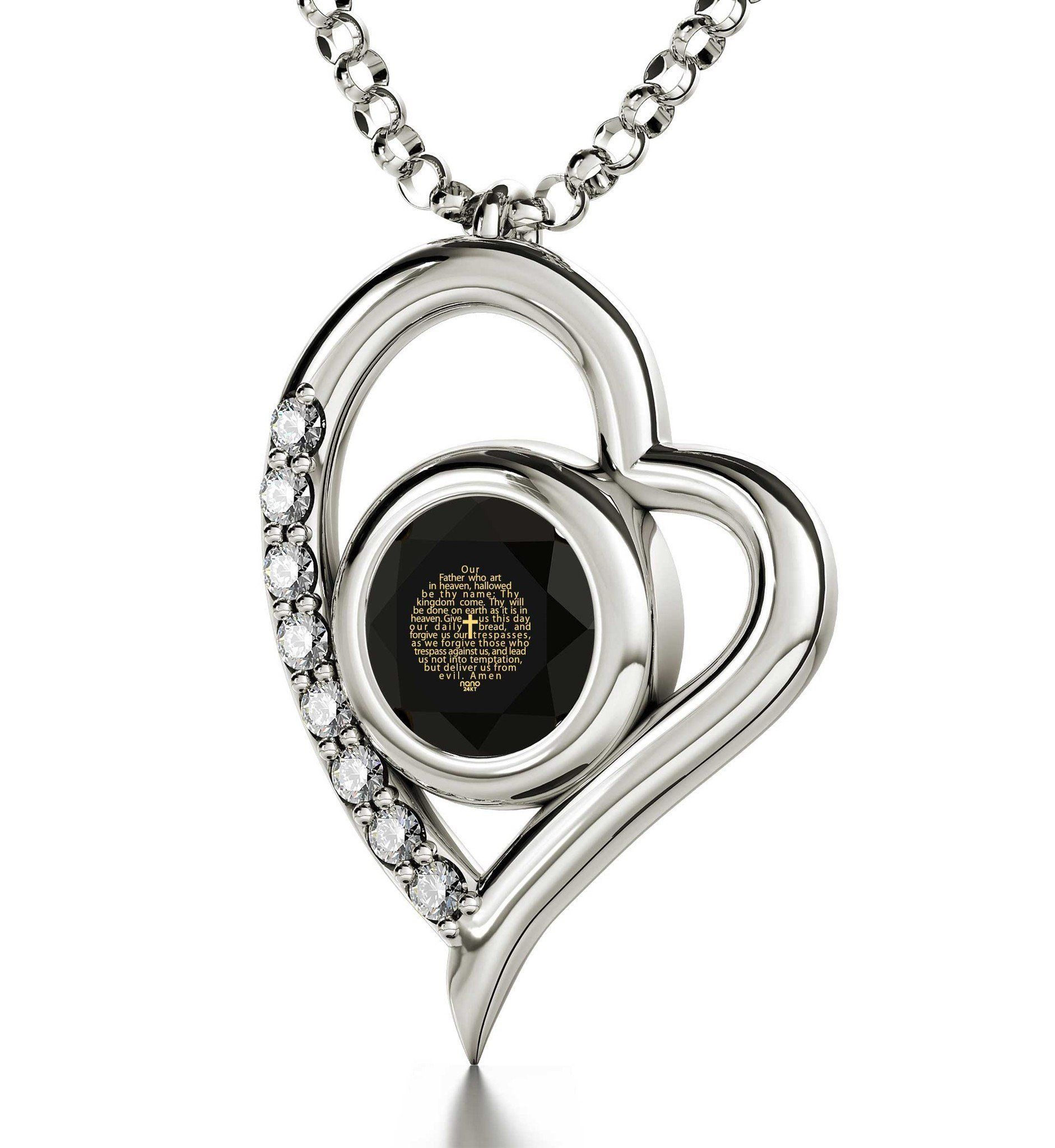 Nano 24k Gold Scripture 'The LORD's Prayer' Inscribed in English - Catholic Version on Swarovski - 3 Micron Gold Plate 'Heart' Necklace