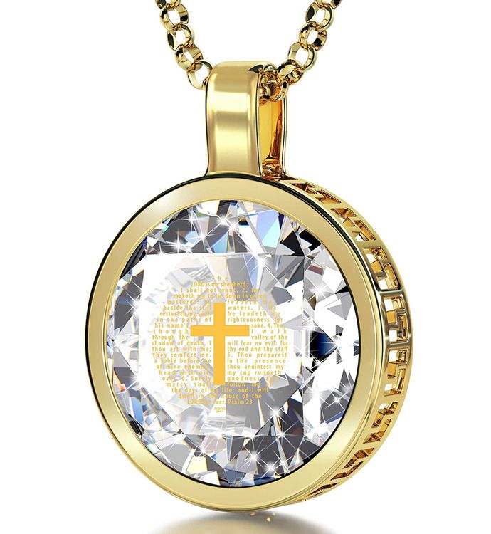 24K Inscription of "Psalm 23" on Zirconia stone, with gold plated frame and necklace - Color Choice