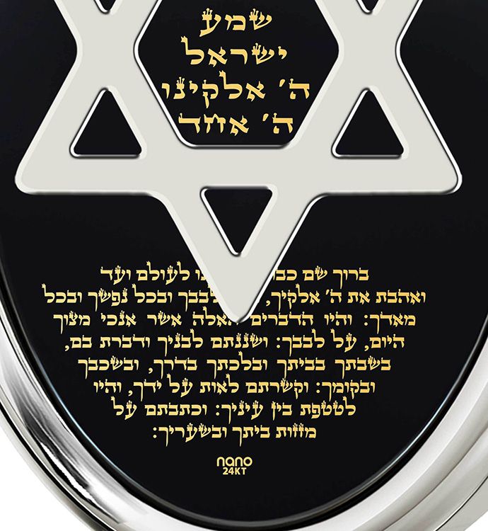 - Shema Yisrael in Star of David inscribed with pure 24k Gold