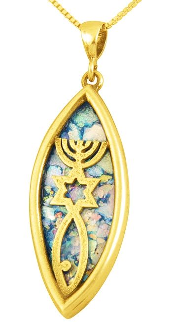 Roman Glass 'Grafted In' Messianic Pendant - 14k Gold - Ellipse - Made in Israel