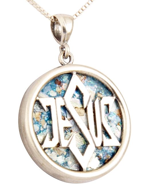 Roman Glass 'Jesus - Star of David' Round Sterling Silver Pendant - Made in Israel