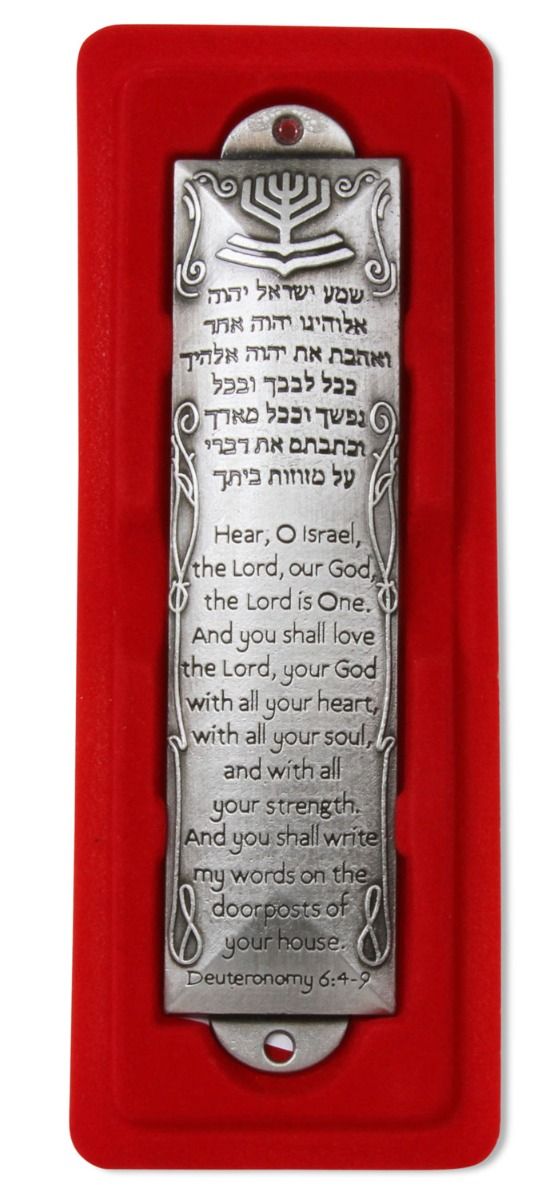 Translation: HEAR, O ISRAEL: The LORD our God, the LORD is one. You shall love the LORD your God with all your heart and with all your soul and with all your might. And these words that I command you today shall be on your heart. You shall teach them diligently to your children, and shall talk of them when you sit in your house, and when you walk by the way, and when you lie down, and when you rise. You shall bind them as a sign on your hand, and they shall be as frontlets between your eyes. You shall write them on the doorposts of your house and on your gates.
