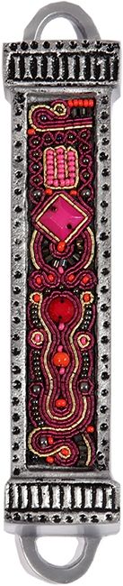Yair Emanuel Embroidered Beads Aluminium Mezuzah Case | Red & Black