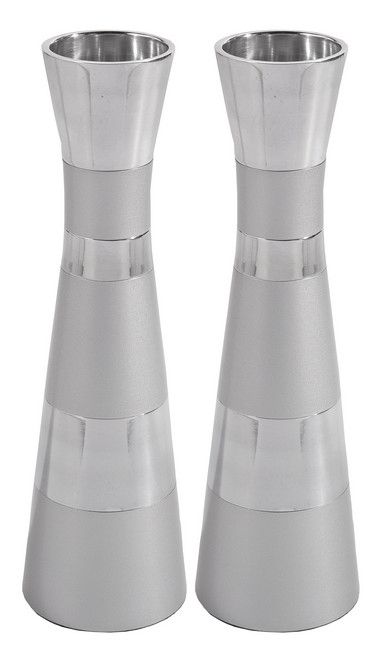 Yair Emanuel Large Anodized Aluminum Candlesticks - Shade of Silver