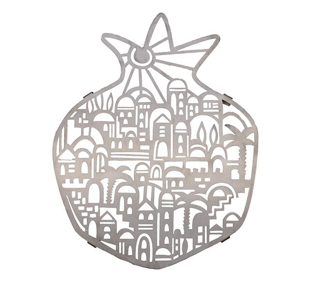 Yair Emanuel Laser-Cut 'Jerusalem' in Pomegranate Shape Stainless Steel Trivet (pot stand)