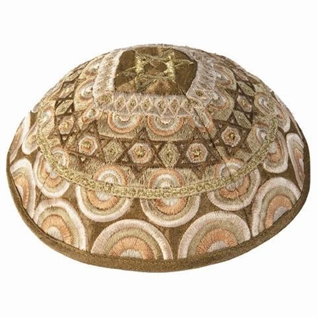 Yair Emanuel | Star of David Embroidered Silk Kippah / Yarmulke - Gold