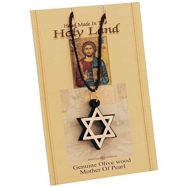 Olive Wood with Mother of Pearl 'Star of David' inlay Necklace - Made in the Holy Land