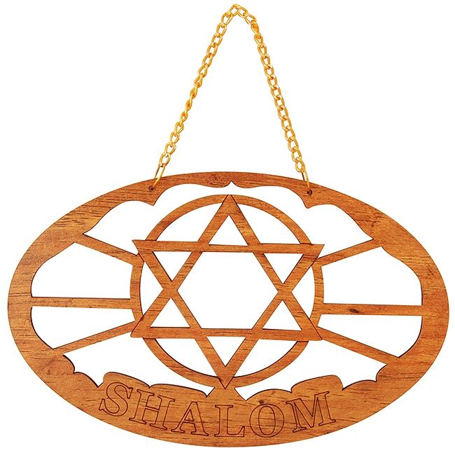 'Shalom' with 'Star of David' Olive Wood Wall Hanging from the Holy Land