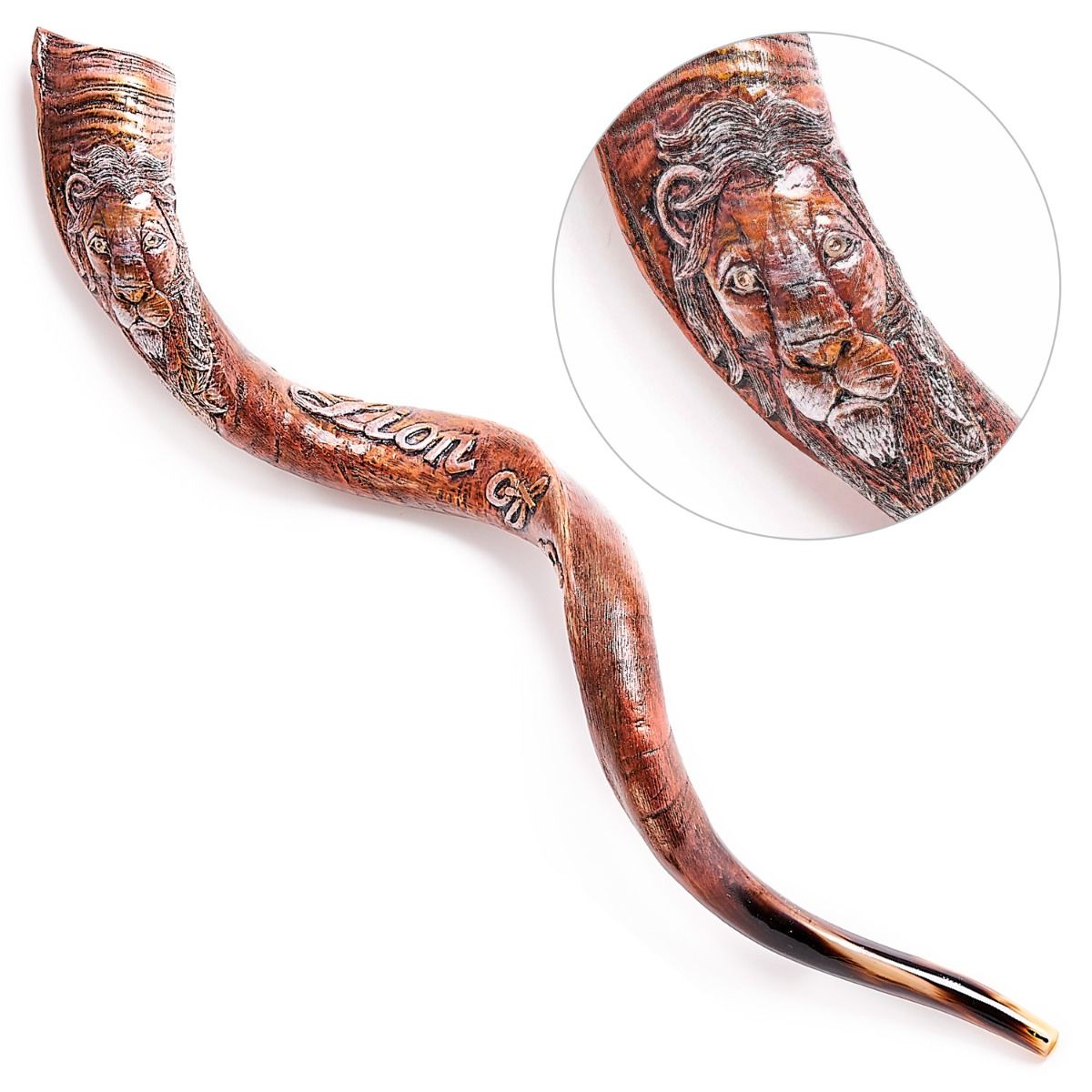 Engraved Yemenite Kudu Shofar - Lion of Judah