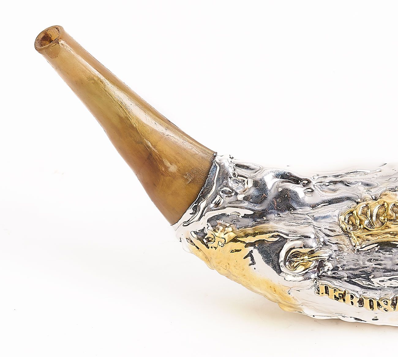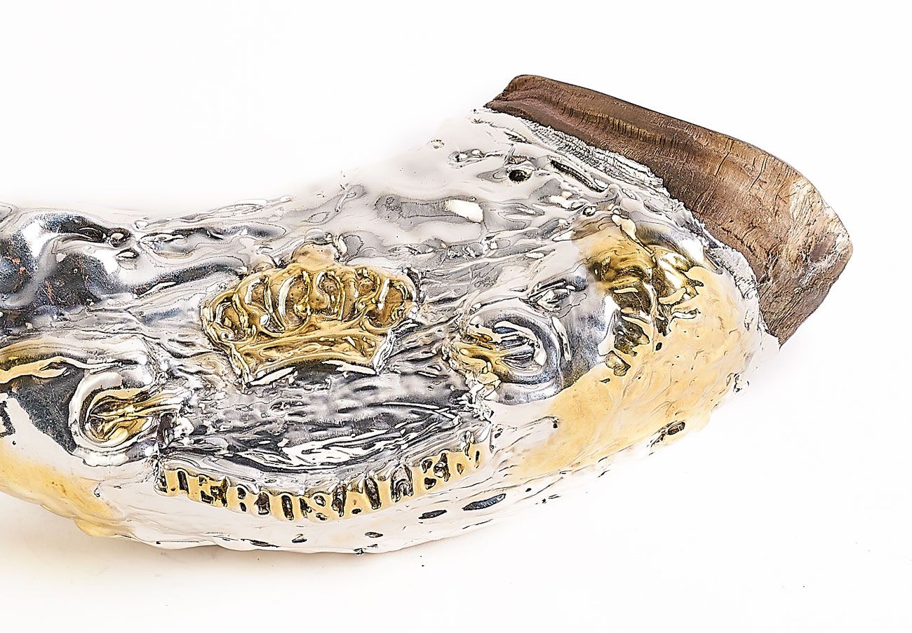 This shofar (12-14 inches | 30.5-35.5 cm) is covered with 925 sterling silver.